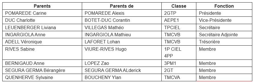 Les membres du bureau de l’APEL, pour cette année 25-26, sont les suivants : MAJ au 29/09/2025